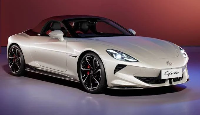 The MG Cyberster is a two-seater electric convertible concept, unveiled in 2021, that reinterprets the classic MGB roadster with a modern, performance-focused design. It features signature electric scissor doors, a Kammback rear with Union Jack tail lights, and a high-tech "gaming-style" cockpit. The production model boasts, among other things, a 3.2-second 0–100 kph time, up to 580 km range (dual-motor), and advanced 5G connectivity.